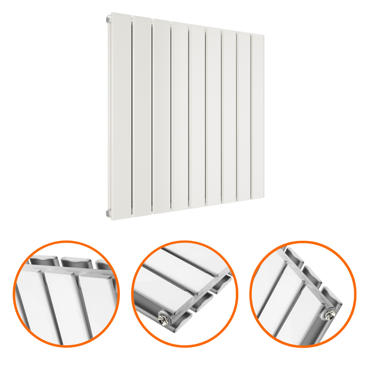 These 635mm x 630mm horizontal flat panel designer radiators are an excellent and affordable way to add both warmth and style to your home. The radiators are manufactured to the highest possible standards using premium quality mild steel which ensures reliability and provides an impressive heat output of 2899 BTU's.