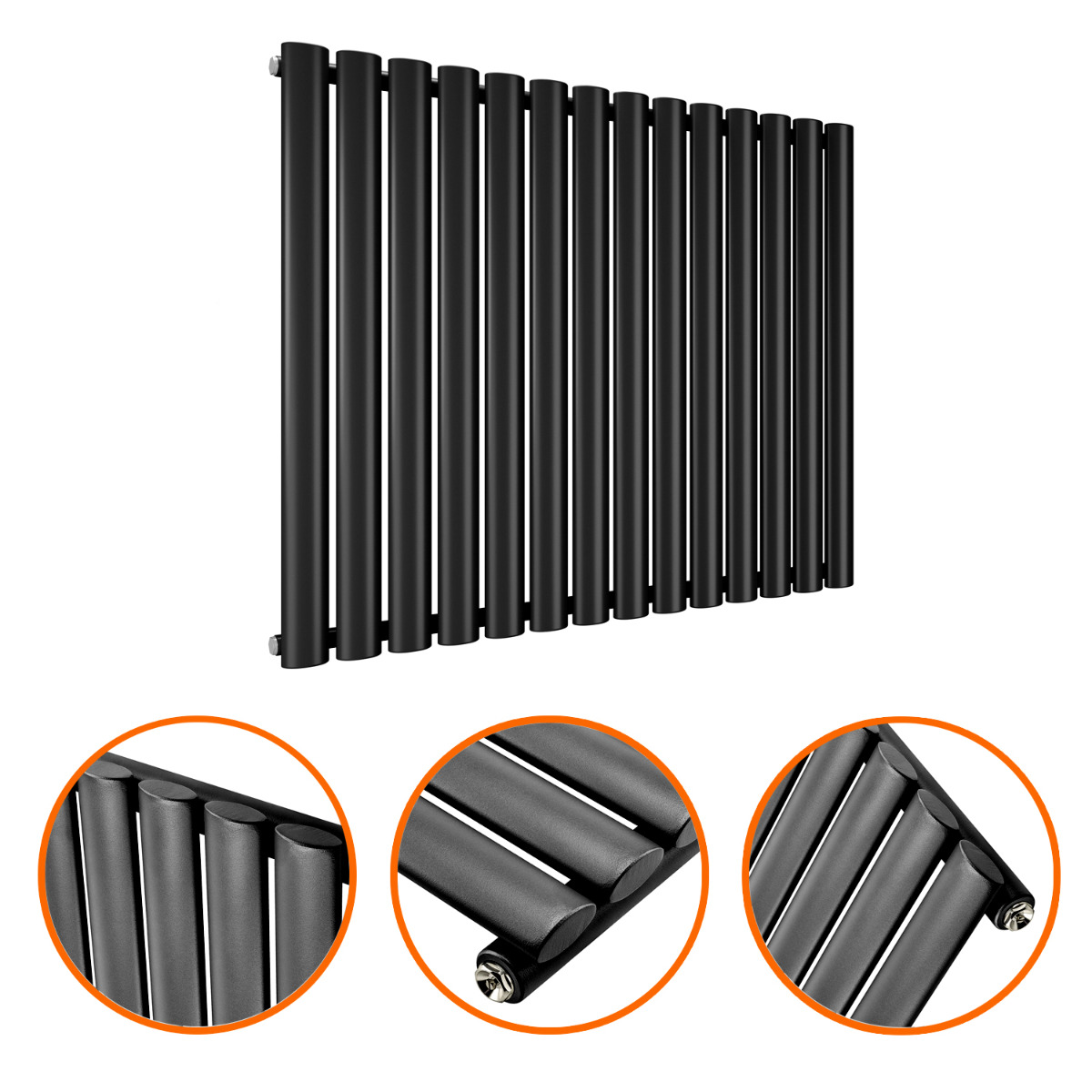 635 x 834mm Black Single Oval Tube Horizontal Radiator