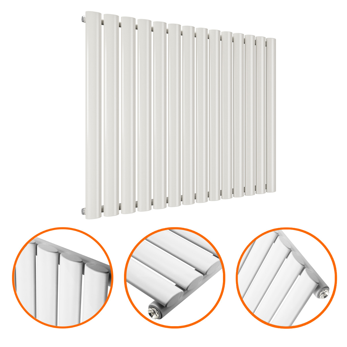 635 x 834mm White Single Oval Tube Horizontal Radiator