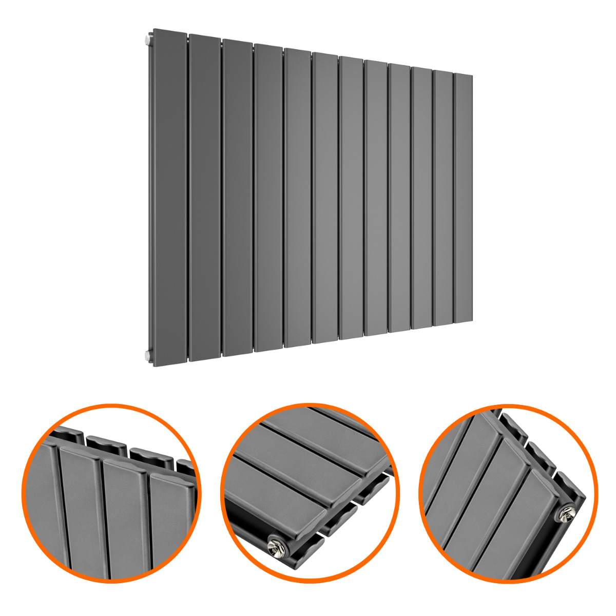 Bring warmth to your home with our designer 635 x 840mm double flat anthracite horizontal panel radiators. Modern radiators from Radiator Outlet will make your rooms will feel a lot warmer during the colder months with a sleek look also.