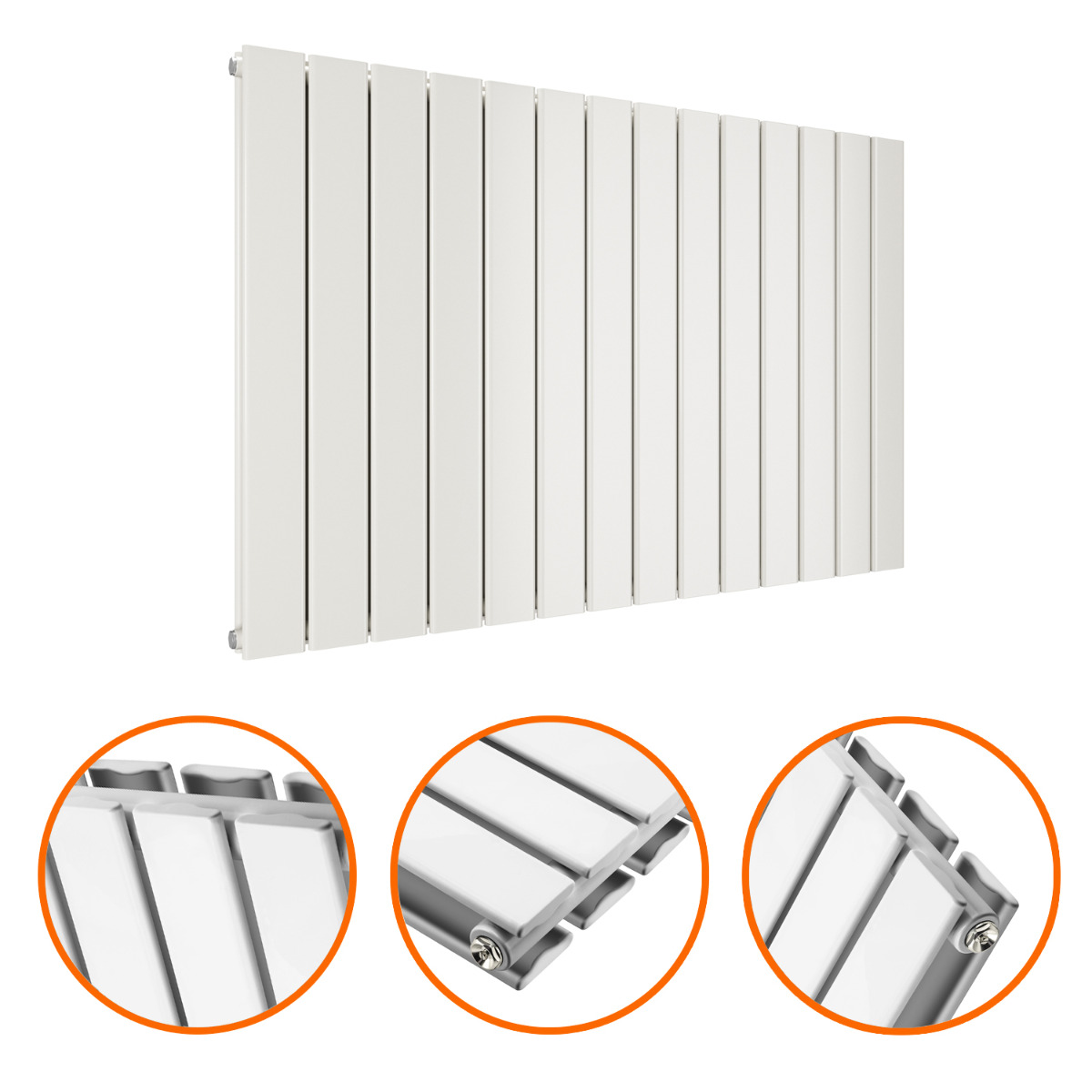These 635mm x 980mm horizontal flat panel designer radiators are an excellent and affordable way to add both warmth and style to your home. The radiators are manufactured to the highest possible standards using premium quality mild steel which ensures reliability and provides an impressive heat output of 4692 BTU's.